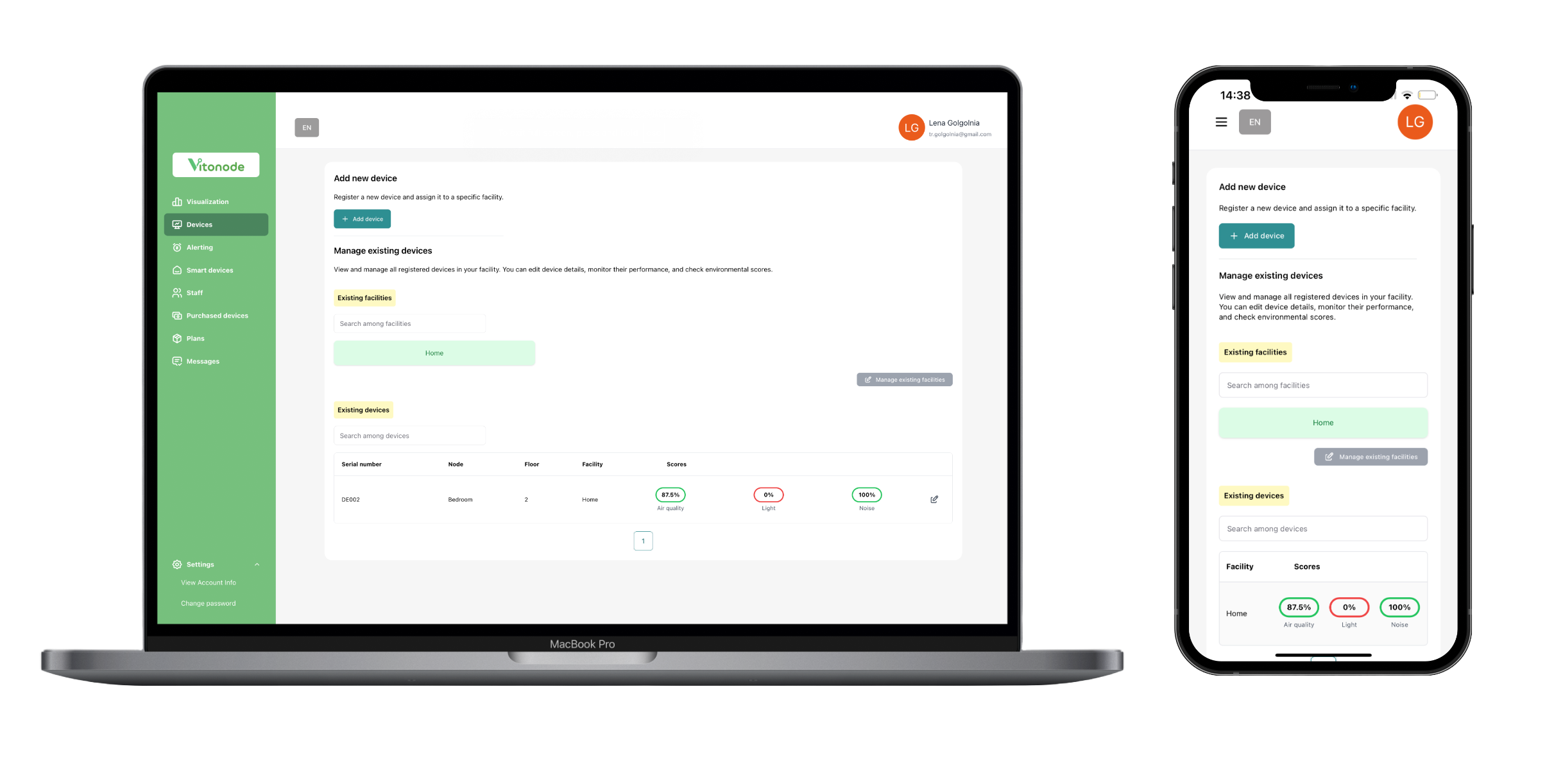 Die Software von VitoNode bietet eine benutzerfreundliche Oberfläche zur übersichtlichen Visualisierung der Daten.Das durchdachte Design ermöglicht eine mühelose Bedienung und eine leichte Erfassung der Umgebungsfaktoren.