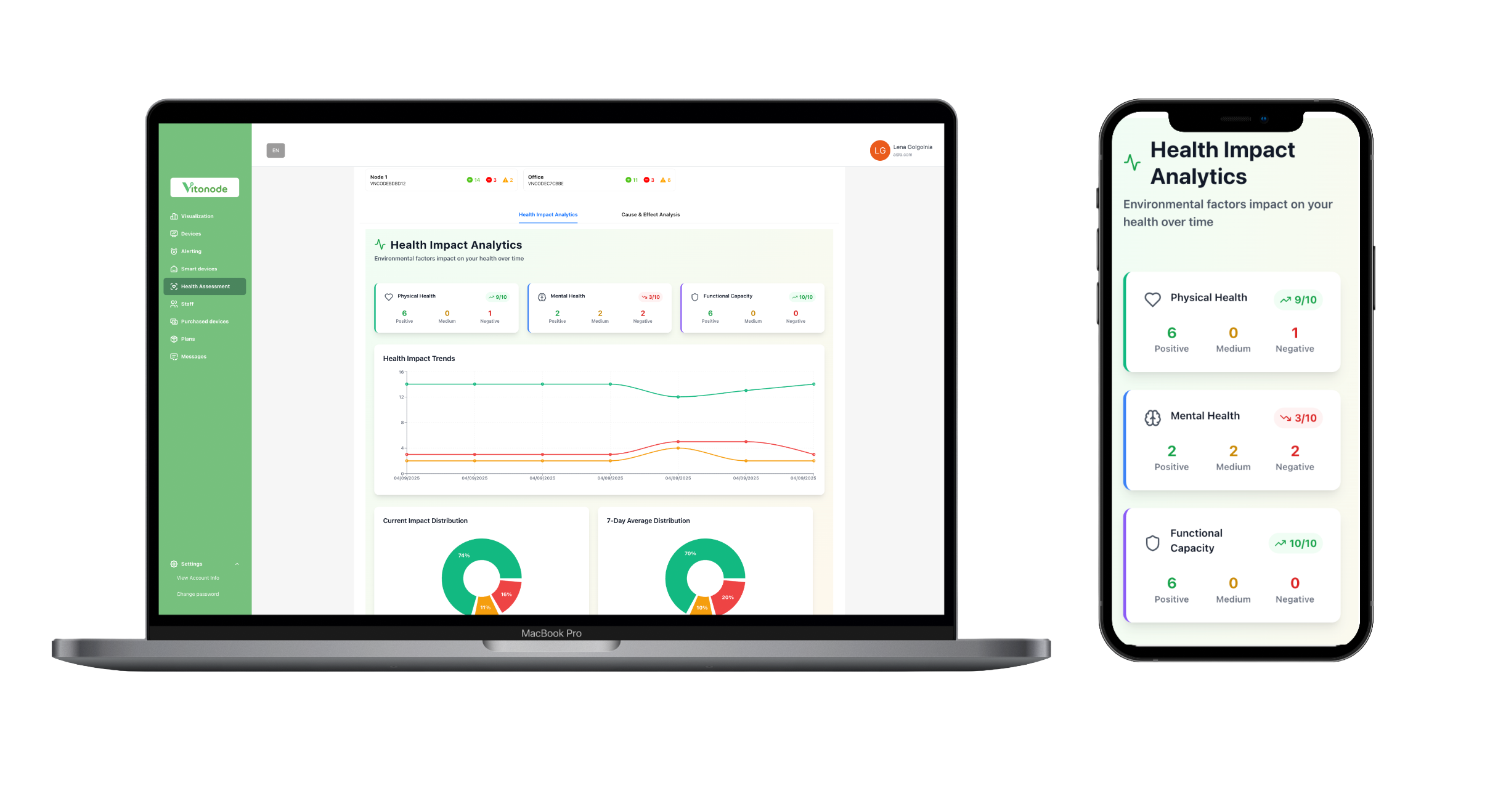 Jeder Umgebungsfaktor in Ihren Innenräumen hat einen wichtigen Einfluss auf Ihr Wohlbefinden. Mit VitoNode optimieren Sie diese Faktoren gezielt – und schaffen ein Umfeld, das Ihre Gesundheit im Alltag wirkungsvoll unterstützt.