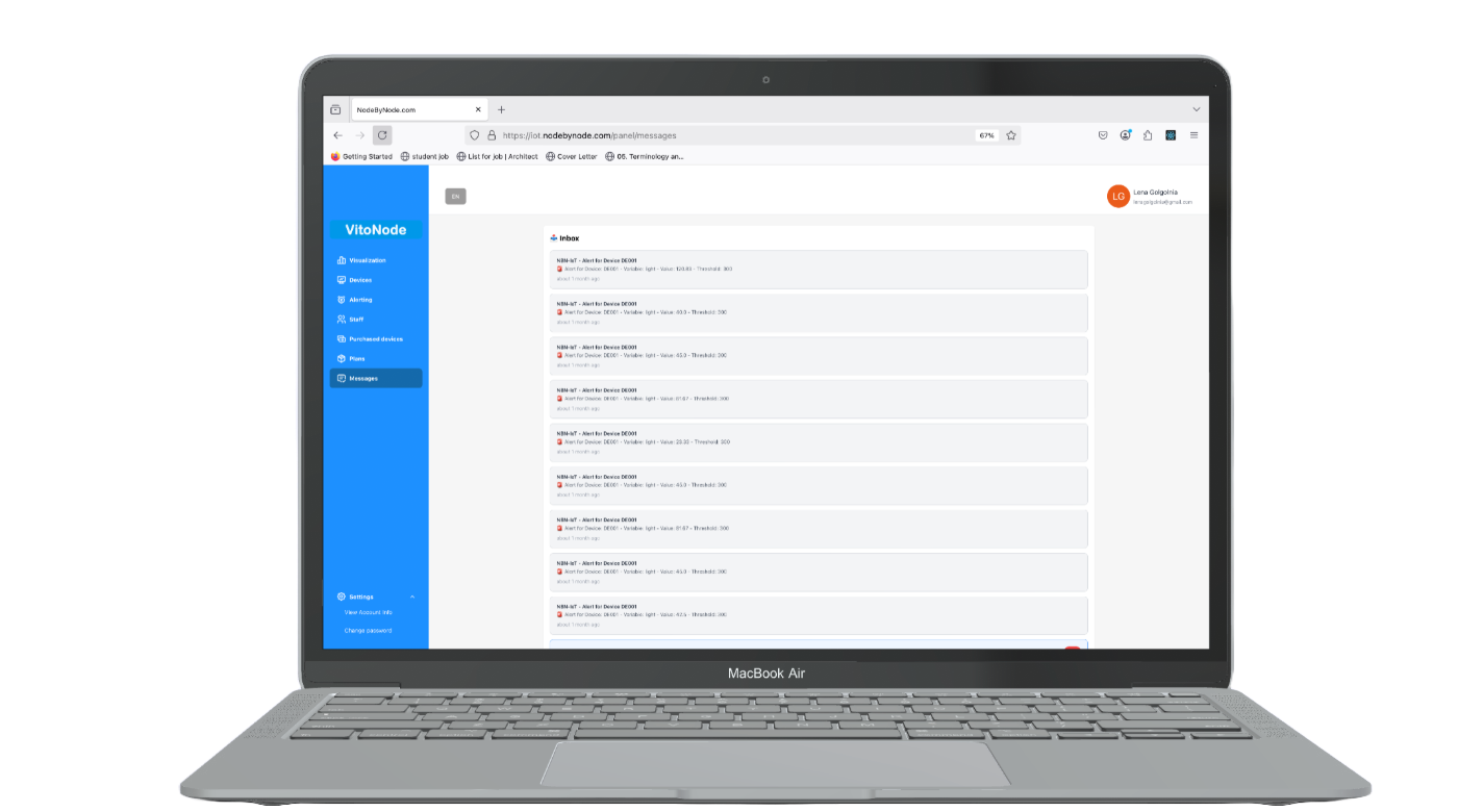 Vitonode benachrichtigt Sie sofort, wenn definierte Schwellenwerte überschritten werden – per Web-App oder mobil. So bleiben Sie immer informiert und können schnell reagieren.